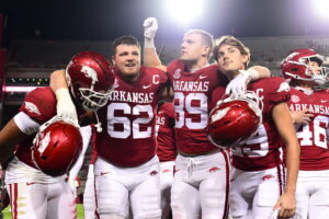 Among the names included were offensive linemen Kelepo Manu and Tasi Fai, both of whom have become anchors in protecting the quarterback and opening lanes for the run game. Their inclusion was no surprise, as both players were instrumental in the Razorbacks’ resurgence last season, earning high praise from coaches across the SEC. Manu, in particular, is considered a future NFL prospect, while Fai is regarded as one of the strongest players on the roster.