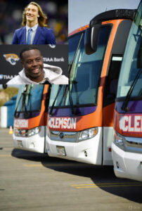 Trevor Lawrence, known for his leadership and unshakable calm under pressure, stood alongside Etienne as they unveiled the new buses in front of thousands of cheering fans. Each vehicle bore the players’ jersey numbers and an inscription reading, “We Built This Legacy.” The moment was emotional, especially for younger players who grew up watching the two dominate college football before making their mark in the NFL. It was more than a gift — it was a declaration that Clemson’s story wasn’t just history, but an evolving tradition.