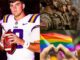 Reactions among fans have been deeply polarized. Some supporters praised Slaughter for taking what they viewed as a bold and patriotic stance, arguing that veterans often go underappreciated despite their sacrifices. Social media comments from this camp were filled with American flag emojis and words of support, calling the young quarterback a “leader with conviction.” On the other hand, critics condemned his remarks as insensitive and divisive, accusing him of disrespecting the LGBTQ+ community and undermining decades of advocacy for equality and representation. The backlash grew intense enough that hashtags calling for his suspension began trending nationwide by the evening.