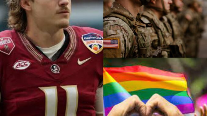 In what has quickly become one of the most talked-about stories in college football and beyond, Florida State’s star quarterback, Glenn Johnson, sparked a nationwide debate after making a bold statement during a post-practice media session in Tallahassee. The junior signal-caller, who has led the Seminoles to back-to-back playoff appearances, expressed his belief that the month of June should be nationally recognized as a time to honor American veterans instead of celebrating Pride Month. The comments, while made in a calm and composed tone, immediately stirred controversy, drawing both praise and criticism from fans, analysts, and advocacy groups across the country.