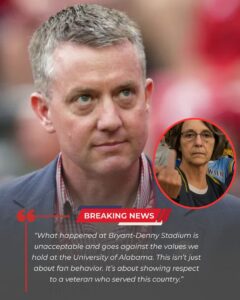 Bryant-Denny Stadium during Alabama’s 23-21 loss to Oklahoma on Saturday, Crimson Tide Athletic Director Greg Byrne issued a scathing nationwide statement late Wednesday afternoon. The episode, captured on fan cell phone video and rapidly spreading across social media, involved a female Alabama supporter unleashing a torrent of offensive, profanity-laced tirade directed at a military veteran wearing an Army service cap in the south end zone stands. Eyewitnesses described the veteran—a decorated Gulf War-era Army sergeant in his late 60s—as remaining composed while attempting to de-escalate, only for stadium security to intervene after bystanders alerted them.