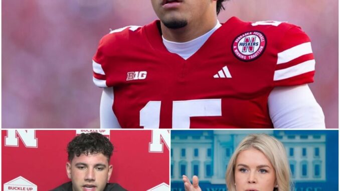 A sensational social media post claiming White House Press Secretary Karoline Leavitt tweeted “YOU NEED TO BE SILENT!” at Nebraska quarterback Dylan Raiola—only for the freshman phenom to dismantle it line-by-line in a live post-game presser—has exploded across platforms, racking up over 1.2 million views in 48 hours. The narrative paints Raiola as a poised truth-teller in “the most dignified takedown in college football history,” with Leavitt as the villain demanding he be labeled “dangerous” and “silenced.” But after a deep dive into X archives, press transcripts, and news databases? It’s pure fiction—a classic case of AI-generated clickbait designed to farm engagement from political and sports echo chambers. No tweet exists. No press conference happened. And the “nation’s eyes” turning? That’s just the glow of a troll farm’s screen.