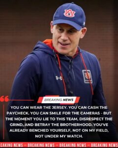 Durkin’s Statement: In a fiery press availability late Monday, Durkin didn’t mince words: “If you think skipping practice and lying about it makes you an Auburn Tiger, think again—not on my field, not under my watch.” He emphasized that the decision was about “protecting the program’s standards,” especially with bowl eligibility and the coaching search hanging in the balance.