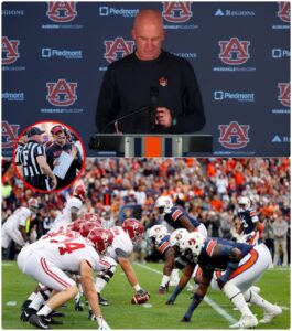 The room froze. Durkin, a defensive savant who’d stabilized Auburn’s unit to No. 26 nationally in points allowed after taking over from the fired Hugh Freeze, wasn’t mincing words. His voice, steady but edged with gravel, carried the weight of a man who’d poured everything into his third game as interim boss—a 1-2 mark now, with this gut-wrencher capping a season of upheaval. He pressed on, leaning into the mic as if addressing the officials directly through the ether: