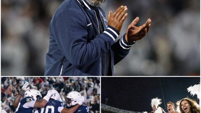 As the celebration subsided and cameras swarmed the podium, Smith—voice steady but eyes fierce—didn’t dwell on rankings or projections. He spoke to the soul of the program, the fans who’d packed Beaver Stadium through rain-soaked losses and injury-riddled stretches, and the brotherhood that’s defined Nittany Lions football since Joe Paterno’s era.