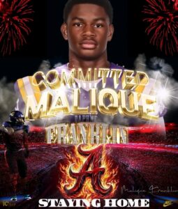 As signing day approaches, Alabama now holds a valuable boost of momentum thanks to Franklin’s decision. The excitement isn’t simply about adding another player; it’s about bringing in someone who embodies the program’s tradition of physical, disciplined defensive football. Malique Franklin arrives with the hunger to prove himself, the physical traits to develop into a major SEC force, and the pride of representing his home state on one of the sport’s biggest stages. For Alabama fans, this commitment sends a clear message: the pipeline of elite in-state talent is alive and thriving, and the future of the Crimson Tide defensive front just became even more promising.