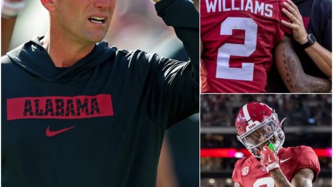 “THE SECRET OF SILENT PAIN!” — Head coach Kalen DeBoer, his voice trembling, revealed the most difficult moments leading up to the Alabama game against the Auburn Tigers, exposing the heartbreaking truth about Ryan Williams’ condition — leaving Crimson Tide fans stunned, emotional, and more ready to support him than ever.
