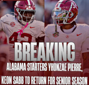 Together, the returns of Pierre and Sabb represent significant news for Alabama’s defense entering the 2026 season. With proven stars anchoring both the front seven and the secondary, the Crimson Tide are positioned to field one of the nation’s most formidable defenses once again.