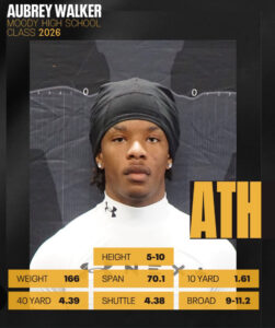 During his senior season, Walker played a pivotal role in Moody’s state championship run. He averaged an eye-opening 16.9 yards per reception, consistently flipping field position and delivering explosive plays when his team needed them most. Whether on deep routes, quick hitters, or yards-after-catch opportunities, Walker proved to be a reliable and dangerous target.
