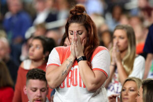 For many Alabama fans inside the arena, the explanation only deepened their frustration. Rivalries are built on trash talk and playful jabs, they argued, but physical violence is something entirely different. Several spectators nearby said the Auburn supporter appeared increasingly agitated even before the shove occurred, pacing in his seat and shouting repeatedly toward the Alabama section.