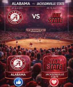 So, mark your calendars and get ready. This isn’t just another regular-season contest — it’s a prime-time showdown that promises drama, intensity, and unforgettable moments. With ESPN delivering it to a national audience, the clash between Alabama Crimson Tide softball and Jacksonville State Gamecocks softball is officially must-watch softball. 🥎🔥
