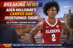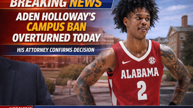 Aden Holloway, one of the brightest young stars for the Alabama Crimson Tide men’s basketball, has had his campus ban officially overturned, according to a statement released by his attorney earlier today. The sudden development has sent waves across the college basketball community, sparking immediate reactions from fans, analysts, and fellow athletes.