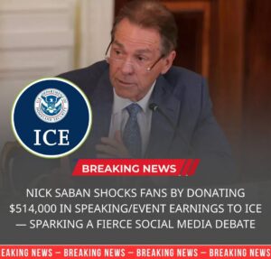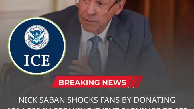 In a development that has set social media ablaze and reignited long-standing debates about the intersection of sports, politics, and personal conviction, a viral report claims that legendary college football coach Nick Saban has donated his entire appearance fee from a recent public engagement—reported to be $514,000—to U.S. Immigration and Customs Enforcement (ICE). The alleged statement attributed to Saban, “America needs secure borders. ICE plays a critical role in keeping our communities safe and deserves full support,” has circulated widely online, prompting both praise and criticism across the American sports community and beyond.
